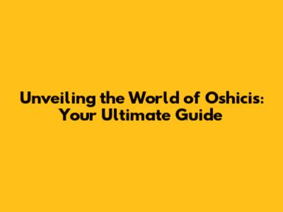 Conclusion: Embrace the Oshicis Lifestyle!
