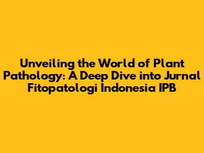 Why Jurnal Fitopatologi Indonesia IPB Is a Must-Read