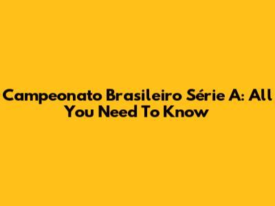 Campeonato Brasileiro Série A: All You Need To Know