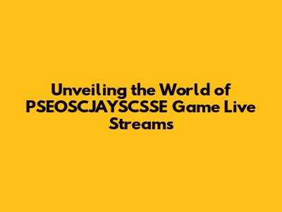 What Exactly Are PSEOSCJAYSCSSE Game Live Streams?