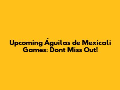 Are you ready for some baseball? If you're a fan of the Águilas de Mexicali, you're in the right place! Let's dive into everything you need to know about their upcoming games. We'll cover schedules, where to watch, and a bit about what makes this team so special. Get ready to cheer!