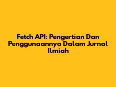 Fetch API: Pengertian Dan Penggunaannya Dalam Jurnal Ilmiah
