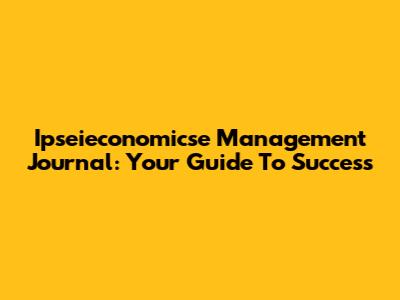 Ipseieconomicse Management Journal: Your Guide To Success
