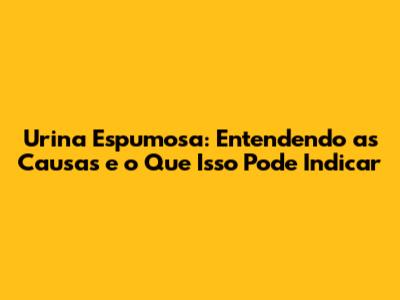 Urina espumosa nem sempre é motivo de pânico, mas é importante estar atento e procurar um médico se a espuma persistir ou se houver outros sintomas. A informação é a chave para a sua saúde. Cuide-se!