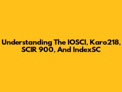 Understanding The IOSCI, Karo218, SCIR 900, And IndexSC