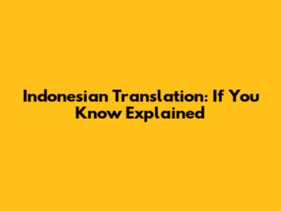 Indonesian Translation: "If You Know" Explained