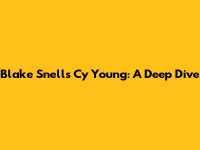 Blake Snell's Cy Young: A Deep Dive
