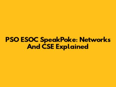 PSO ESOC SpeakPoke: Networks And CSE Explained