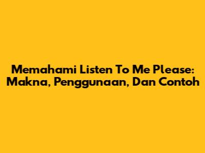 Memahami 'Listen To Me Please': Makna, Penggunaan, Dan Contoh