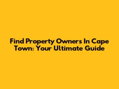 Find Property Owners In Cape Town: Your Ultimate Guide