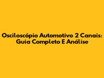 Osciloscópio Automotivo 2 Canais: Guia Completo E Análise