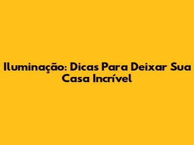 Iluminação: Dicas Para Deixar Sua Casa Incrível