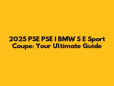2025 PSE PSE I BMW S E Sport Coupe: Your Ultimate Guide