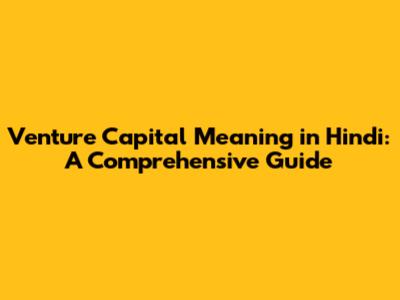 What is Venture Capital? (वेंचर कैपिटल क्या है?)