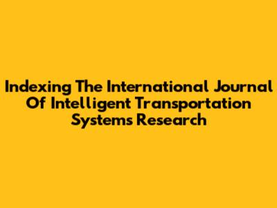 Indexing The International Journal Of Intelligent Transportation Systems Research