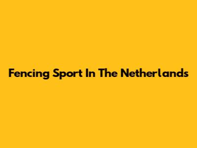 Fencing Sport In The Netherlands