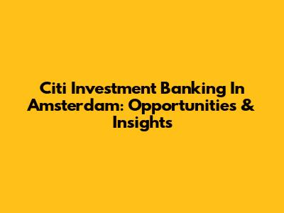 Citi Investment Banking In Amsterdam: Opportunities & Insights