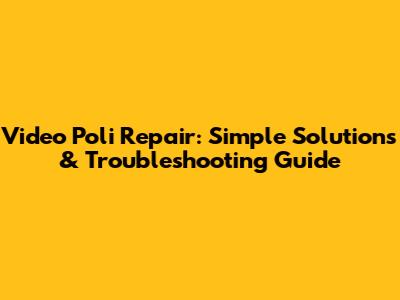 Video Poli Repair: Simple Solutions & Troubleshooting Guide