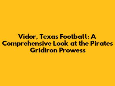 Hey sports fanatics! Ever heard of Vidor, Texas football? If not, you're in for a treat. Today, we're diving deep into the world of the Vidor Pirates, exploring their history, achievements, and the passionate community that rallies behind them. Get ready for an exciting journey through the heart of Texas high school football, where Friday night lights shine bright, and the spirit of competition runs wild. So, buckle up, and let's explore everything about Vidor, Texas football! From the roaring cheers of the crowd to the nail-biting finishes on the field, we'll uncover what makes the Pirates a team to watch.