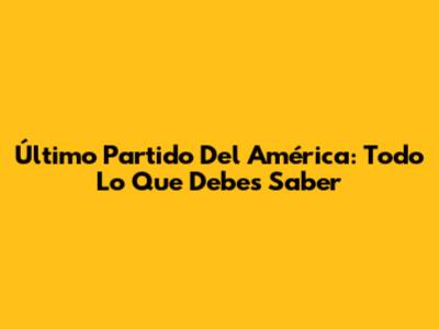 Último Partido Del América: Todo Lo Que Debes Saber