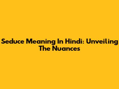 Seduce Meaning In Hindi: Unveiling The Nuances