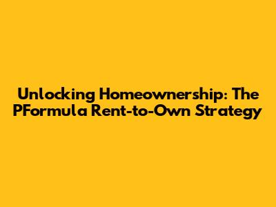 Unlocking Homeownership: The PFormula Rent-to-Own Strategy