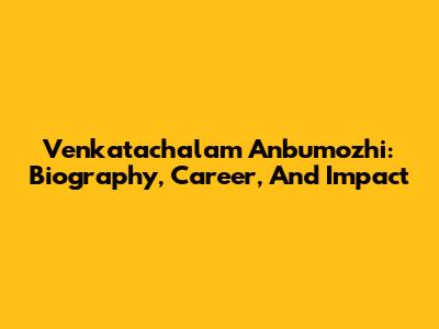 Venkatachalam Anbumozhi: Biography, Career, And Impact