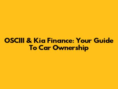 OSCIII & Kia Finance: Your Guide To Car Ownership