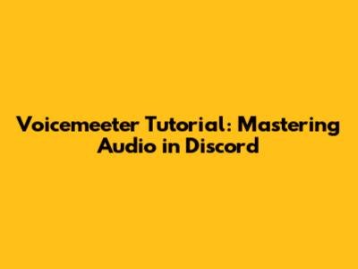 Advanced Voicemeeter Techniques for Discord