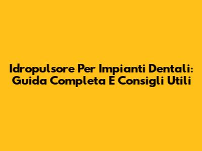 Idropulsore Per Impianti Dentali: Guida Completa E Consigli Utili
