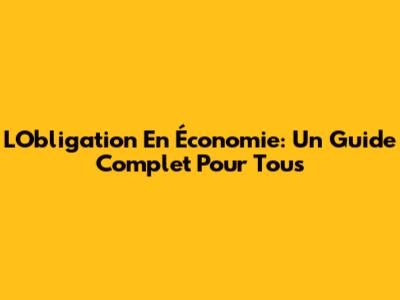 L'Obligation En Économie: Un Guide Complet Pour Tous