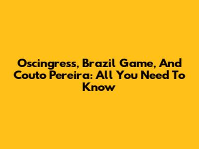 Oscingress, Brazil Game, And Couto Pereira: All You Need To Know