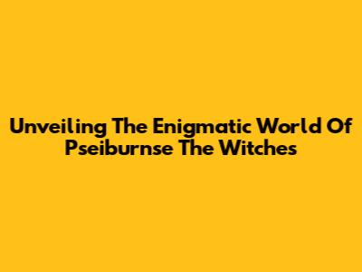 Unveiling The Enigmatic World Of 'Pseiburnse The Witches'
