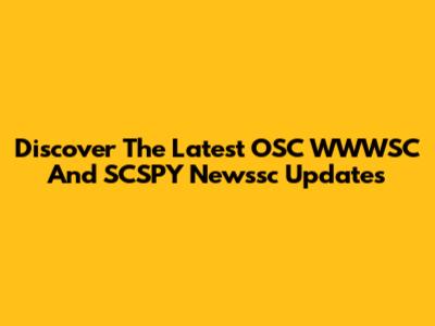 Discover The Latest OSC WWWSC And SCSPY Newssc Updates