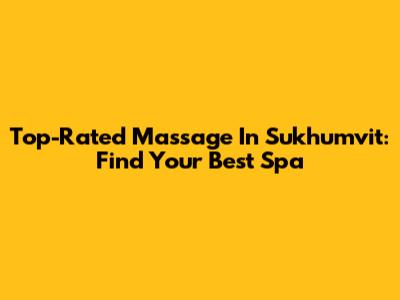 Top-Rated Massage In Sukhumvit: Find Your Best Spa