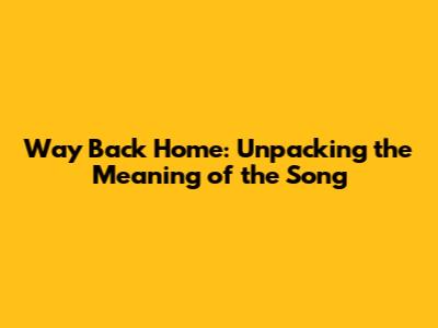 Why "Way Back Home" Resonates So Much