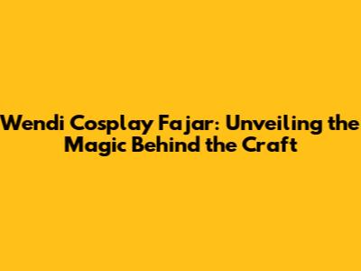 Diving Deep into the Artistry of Wendi Cosplay Fajar: What Makes It Truly Special?