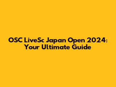 OSC LiveSc Japan Open 2024: Your Ultimate Guide