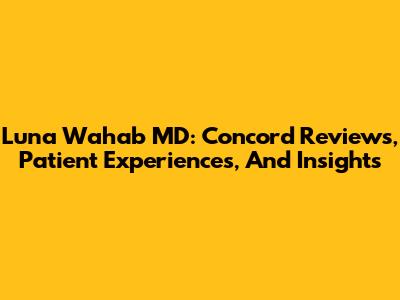 Luna Wahab MD: Concord Reviews, Patient Experiences, And Insights