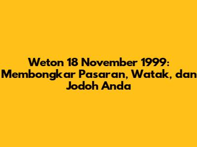 Halo, guys! Pernah nggak sih kalian penasaran sama arti di balik tanggal lahir kalian, terutama kalau ngomongin weton? Nah, buat kalian yang lahir di tanggal 18 November 1999, yuk kita kupas tuntas weton kalian! Ini bukan sekadar ramalan, tapi lebih ke pemahaman diri yang bisa bantu kalian menjalani hidup lebih baik. Jadi, siap-siap ya, kita bakal selam ke dunia weton yang seru abis!