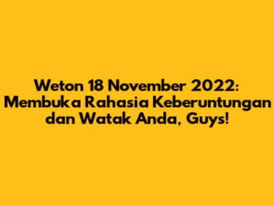 Hey, what's up, everyone! Hari ini kita bakal ngulik soal weton nih, khususnya buat kalian yang lahir di tanggal 18 November 2022. Buat kalian yang lagi penasaran sama arti weton kalian, atau mungkin lagi cari tau gimana sih nasib dan karakter orang-orang yang lahir di tanggal ini, pas banget nih! Kita bakal bedah tuntas semuanya biar kalian makin paham dan bisa jadi panduan. Gak cuma soal keberuntungan, tapi juga soal watak, jodoh, rezeki, dan bahkan karier yang cocok. Jadi, siap-siap ya, guys, karena kita bakal menyelami dunia primbon yang penuh misteri dan makna. Percaya atau enggak, mengetahui weton bisa jadi salah satu cara buat kita lebih mengenali diri sendiri dan orang-orang di sekitar kita. Siapa tau, setelah baca artikel ini, kalian jadi makin pede sama jalan hidup kalian atau malah nemu petunjuk buat jadi pribadi yang lebih baik lagi. Yuk, langsung aja kita mulai petualangan seru ini!