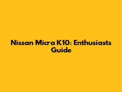 Nissan Micra K10: Enthusiast's Guide