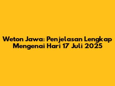 Guys, mari kita selami dunia weton Jawa yang menarik dan penuh makna! Kalian penasaran kan, tanggal 17 Juli 2025 itu hari apa dalam kalender Jawa? Nah, artikel ini akan mengupas tuntas tentang hal itu. Kita akan membahas weton apa yang bertepatan dengan tanggal tersebut, sifat-sifat yang mungkin dimiliki berdasarkan weton itu, serta bagaimana weton bisa memengaruhi kehidupan sehari-hari. Jadi, simak terus ya!
