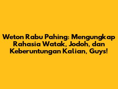 Hayoo, siapa di sini yang lahir di hari Rabu Wage? Kalian pasti penasaran banget kan sama arti weton kalian, terutama weton Rabu Pahing ini. Nah, guys, kalau kalian lahir di weton ini, kalian itu termasuk orang yang spesial lho. Kenapa spesial? Karena weton Rabu Pahing ini punya kombinasi neptu yang unik dan dianggap punya kekuatan serta aura tersendiri. Dalam tradisi Jawa, weton itu bukan cuma sekadar penanda hari lahir, tapi juga dipercaya bisa ngasih gambaran tentang watak, rezeki, jodoh, bahkan sampai nasib seseorang. Jadi, buat kalian yang lahir di weton Rabu Pahing, siap-siap ya, kita bakal ngulik lebih dalam lagi soal keistimewaan kalian! Yuk, kita bedah tuntas apa aja sih makna di balik weton Rabu Pahing ini, gimana kecocokan jodohnya, dan gimana cara kalian bisa memaksimalkan keberuntungan yang udah melekat sama weton kalian ini. Dijamin bakal seru dan nambah wawasan kalian, guys!