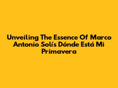 Unveiling The Essence Of Marco Antonio Solís' "Dónde Está Mi Primavera"