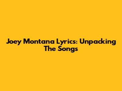 Joey Montana Lyrics: Unpacking The Songs