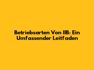Betriebsarten Von IIB: Ein Umfassender Leitfaden
