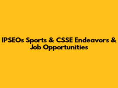 IPSEO's Sports & CSSE Endeavors & Job Opportunities