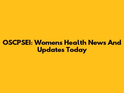 OSCPSEI: Women's Health News And Updates Today