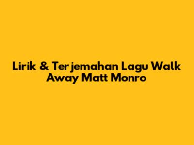 Lirik & Terjemahan Lagu 'Walk Away' Matt Monro